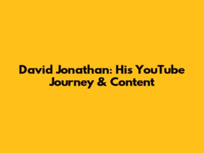 David Jonathan: His YouTube Journey & Content