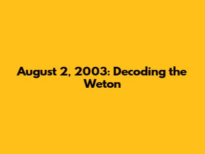 Hey guys! Ever wondered about the Javanese calendar and how it ties into our lives? Well, let's dive into something specific: August 2, 2003, and its corresponding weton (Javanese calendar day). This is gonna be a fun ride through tradition and culture, so buckle up! We'll explore what the weton for that day was, its significance, and why it matters to those who follow this ancient system.