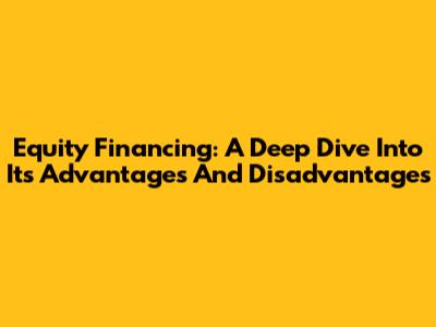 Equity Financing: A Deep Dive Into Its Advantages And Disadvantages