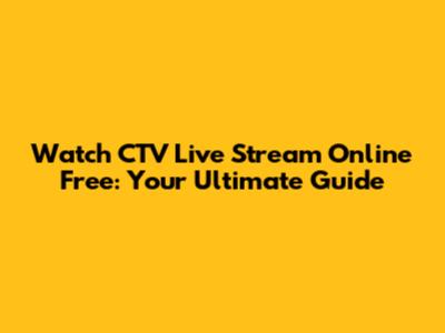 Watch CTV Live Stream Online Free: Your Ultimate Guide