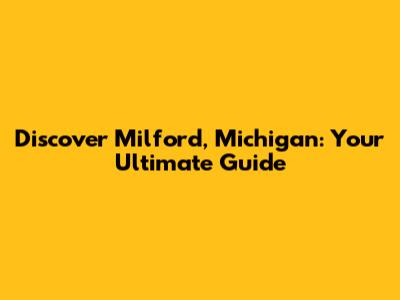 Discover Milford, Michigan: Your Ultimate Guide