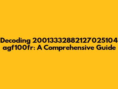 When trying to understand a complex identifier like 20013332882127025104 agf100fr, a good starting point is to break it down into smaller, more manageable chunks. Let's analyze each part individually: