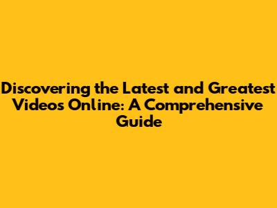 Discovering The Latest And Greatest Videos Online: A Comprehensive Guide