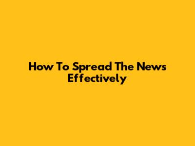 How To Spread The News Effectively
