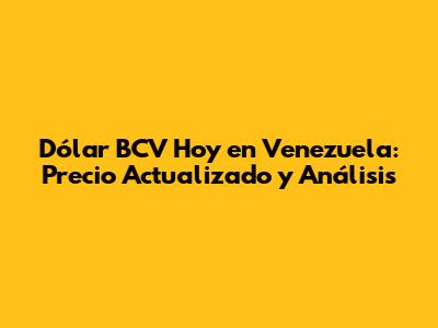 Dólar BCV Hoy En Venezuela: Precio Actualizado Y Análisis