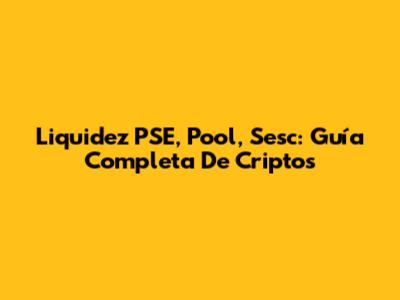 Liquidez PSE, Pool, Sesc: Guía Completa De Criptos