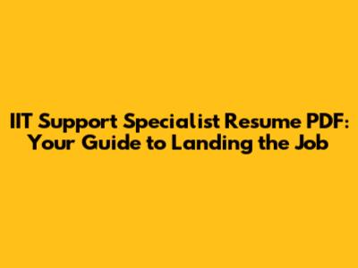 IIT Support Specialist Resume: Guide & PDF Example