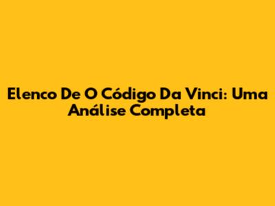 Elenco De O Código Da Vinci: Uma Análise Completa
