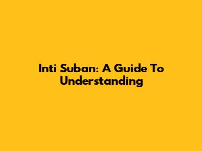 Inti Suban: A Guide To Understanding