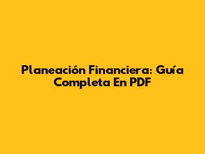 Planeación Financiera: Guía Completa En PDF