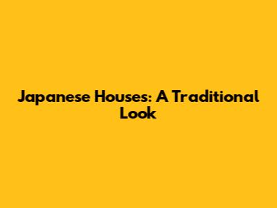 Japanese Houses: A Traditional Look