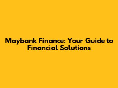 Maybank Finance: Your Guide To Financial Solutions