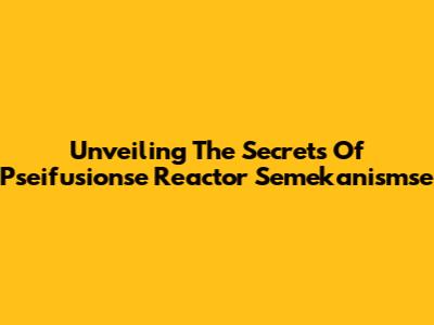 Unveiling The Secrets Of Pseifusionse Reactor Semekanismse