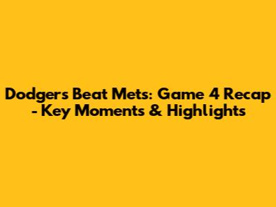 Dodgers Beat Mets: Game 4 Recap - Key Moments & Highlights
