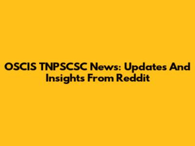 OSCIS TNPSCSC News: Updates And Insights From Reddit