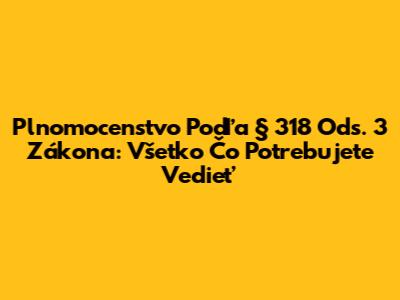 Plnomocenstvo Podľa § 318 Ods. 3 Zákona: Všetko Čo Potrebujete Vedieť