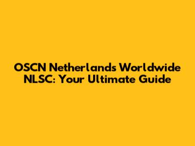 OSCN Netherlands Worldwide NLSC: Your Guide