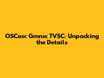 OSCosc Gmnsc TVSC: All You Need To Know
