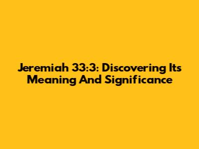 Jeremiah 33:3: Discovering Its Meaning And Significance