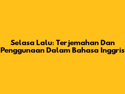 Selasa Lalu: Terjemahan Dan Penggunaan Dalam Bahasa Inggris