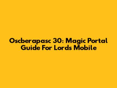 Oscberapasc 30: Magic Portal Guide For Lords Mobile