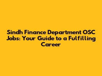 Sindh Finance Department OSC Jobs: Your Guide