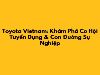 Chào mừng các bạn đến với thế giới của Toyota Vietnam! Nếu bạn đang tìm kiếm một cơ hội nghề nghiệp vững chắc và đầy triển vọng, thì không đâu xa, hãy cùng khám phá Toyota Vietnam tuyển dụng ngay thôi! Bài viết này sẽ cung cấp cho bạn những thông tin chi tiết, từ những vị trí tuyển dụng hấp dẫn, các yêu cầu cơ bản, đến những bí quyết để bạn có thể chinh phục nhà tuyển dụng một cách dễ dàng. Hãy cùng nhau khám phá hành trình sự nghiệp tại Toyota Vietnam, nơi bạn có thể phát triển bản thân và đóng góp vào sự thành công của một trong những thương hiệu xe hơi hàng đầu thế giới.