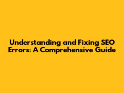 Understanding And Fixing SEO Errors: A Comprehensive Guide