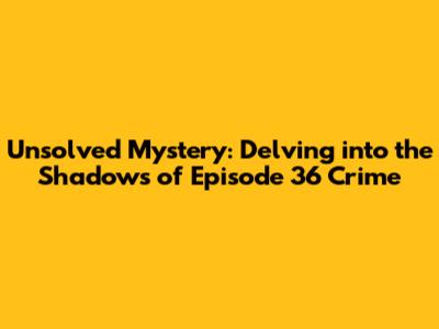 Unsolved mysteries like Episode 36 Crime continue to intrigue and challenge us, prompting us to reflect on the intricacies of human behavior and the pursuit of justice. Remember to stay curious, stay informed, and never underestimate the power of collective inquiry in unraveling the truth. Who knows, maybe one day, we'll finally have all the answers.